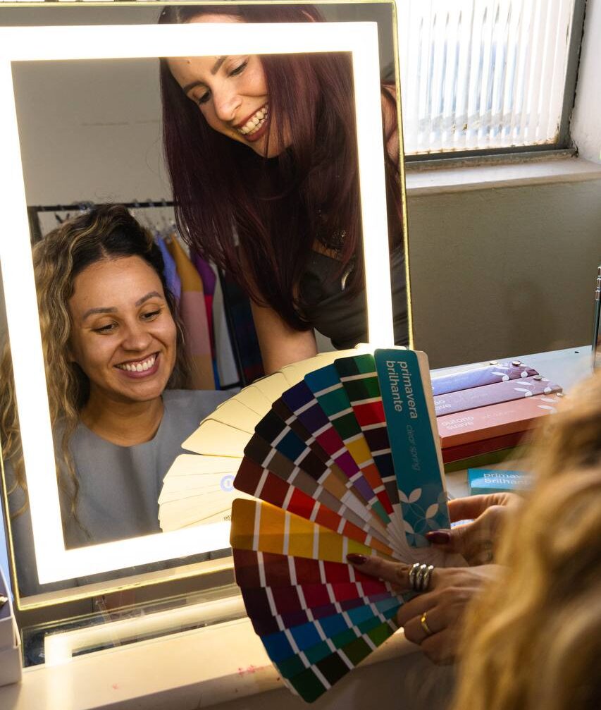 A Consultoria em coloração online e presencial ajuda a descobrir as cores que favorecem a sua beleza! É um estudo que mostra a reação das cores com sua pele que é onde descobrimos sua cartela de cores.